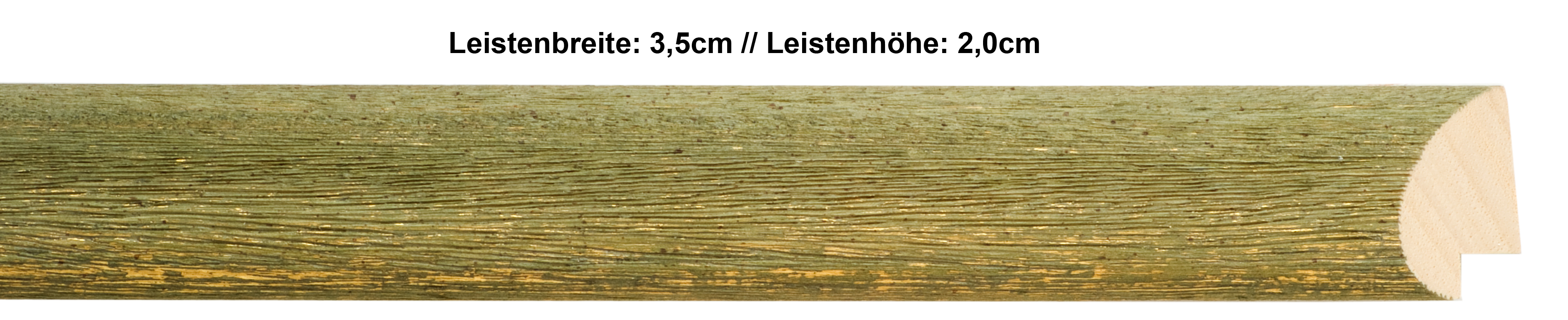 Abgerundete, geriffelte Leiste, gold durchgerieben.
