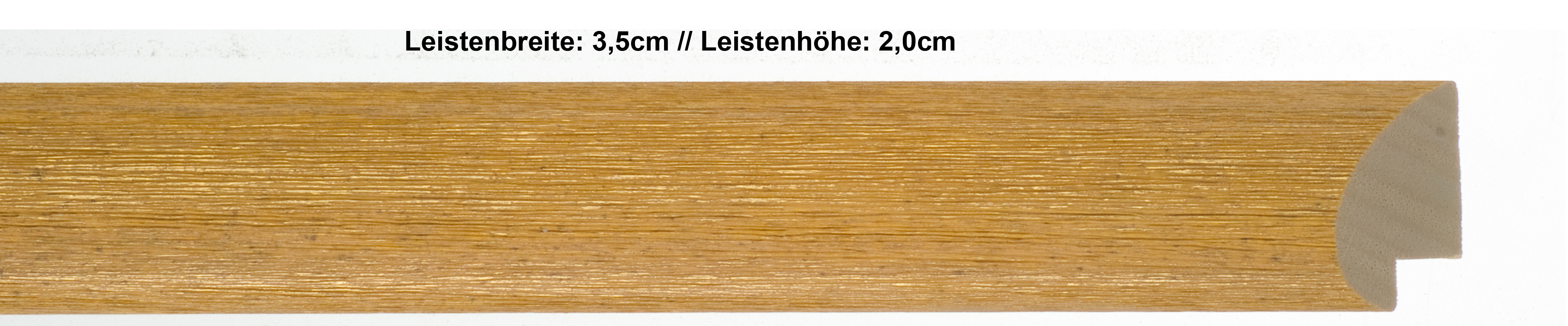 Abgerundete, geriffelte Leiste, gold durchgerieben.