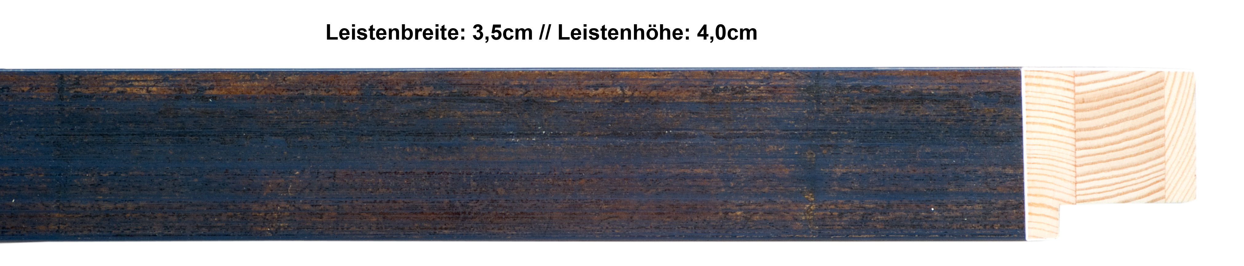 Große, kantige Leiste in blau mit goldenem Durchrieb, gewachst.