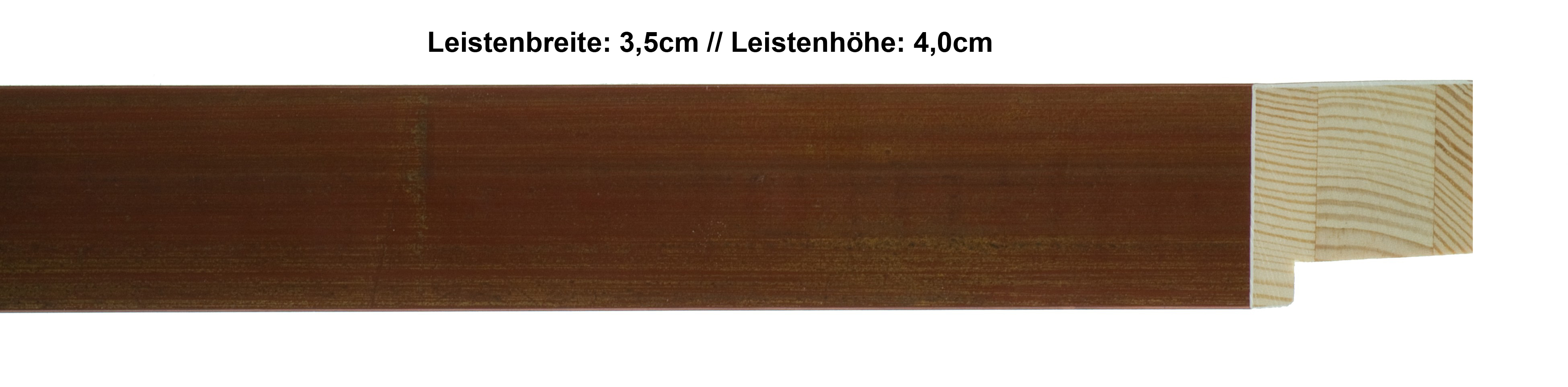 Große, kantige Leiste in rotbraun mit goldenem Durchrieb, gewachst.