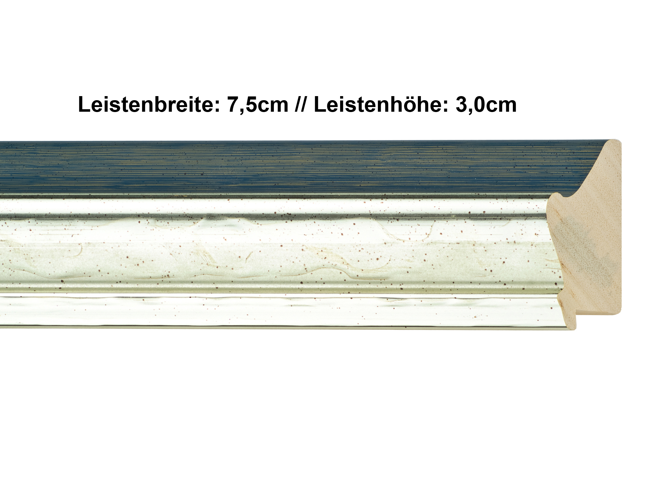 Elegante, breite Leiste in silber und blau.