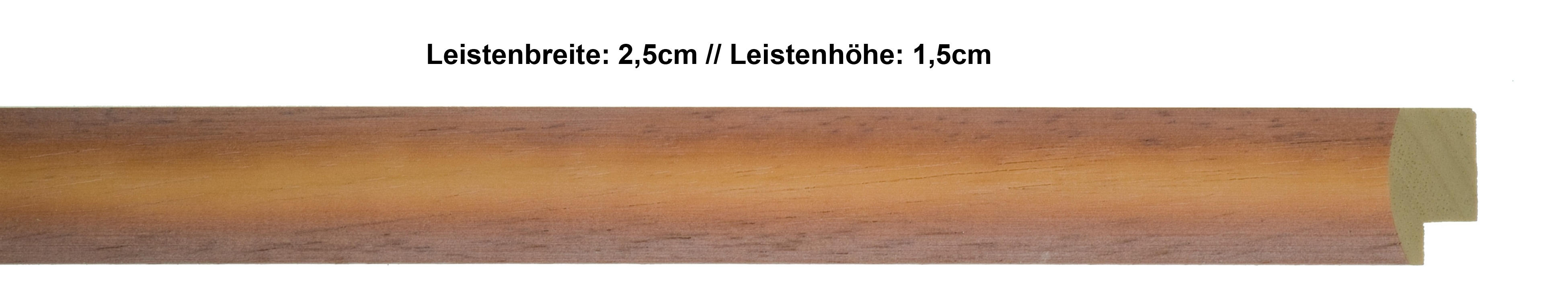 Halbrunde, lackierte Holzleiste. Aufgrund Ihres changierenden Farbverlaufes besonders für Aquarelle oder Pastelle geeignet.